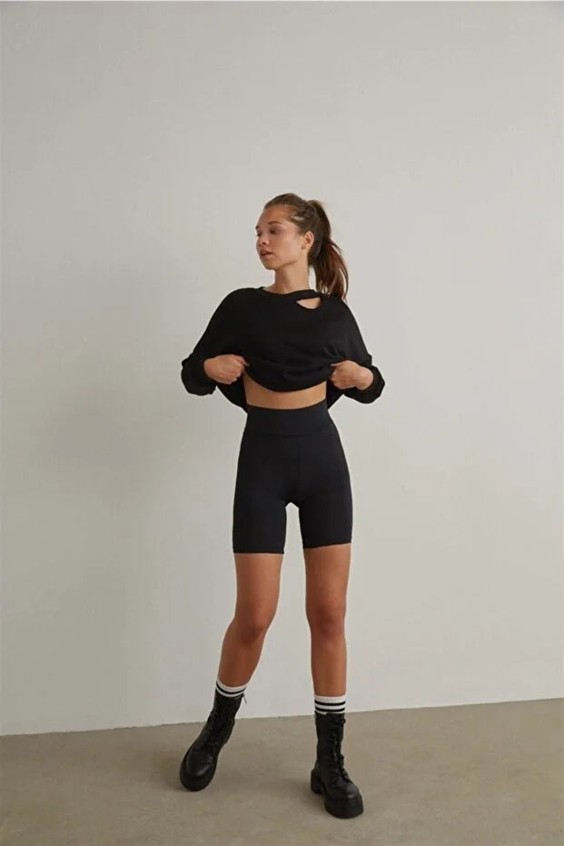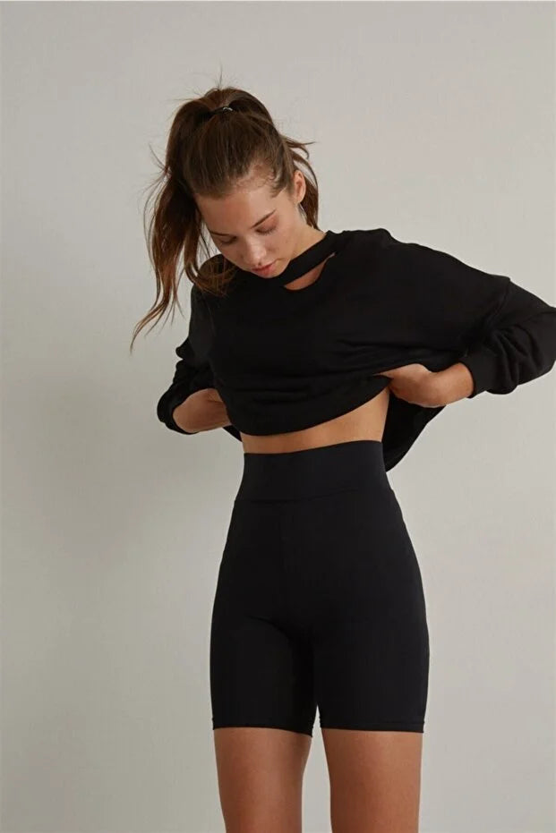 Yüksek Bel Toparlayıcı Etkili Mat Biker Bisikletçi Tayt